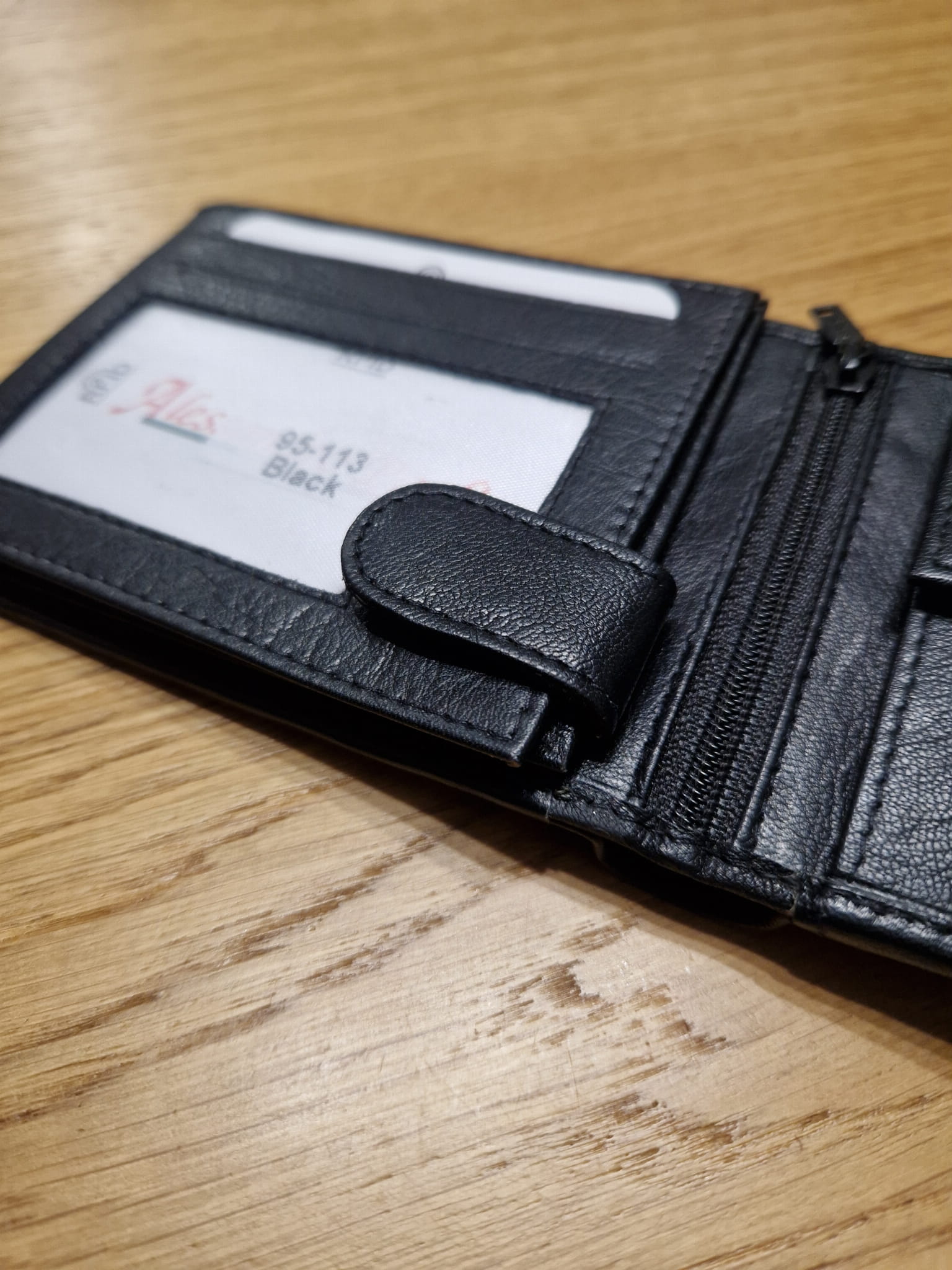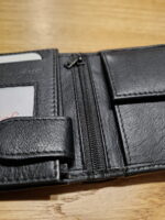 Portfel ma również dwie niezależne przegrody na banknoty i jedną komorę na drobne.