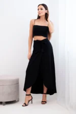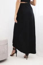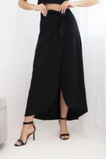 Elegancka i niezwykle kobieca spódnica damska kopertowa maxi to doskonała propozycja na wiosnę i lato. Zwiewny fason pięknie układa się na sylwetce, a kopertowy krój subtelnie eksponuje nogę, nadając stylizacji lekkości i zmysłowego charakteru. Wysoki stan z wiązaniem w talii podkreśla figurę i pozwala na idealne dopasowanie do sylwetki.