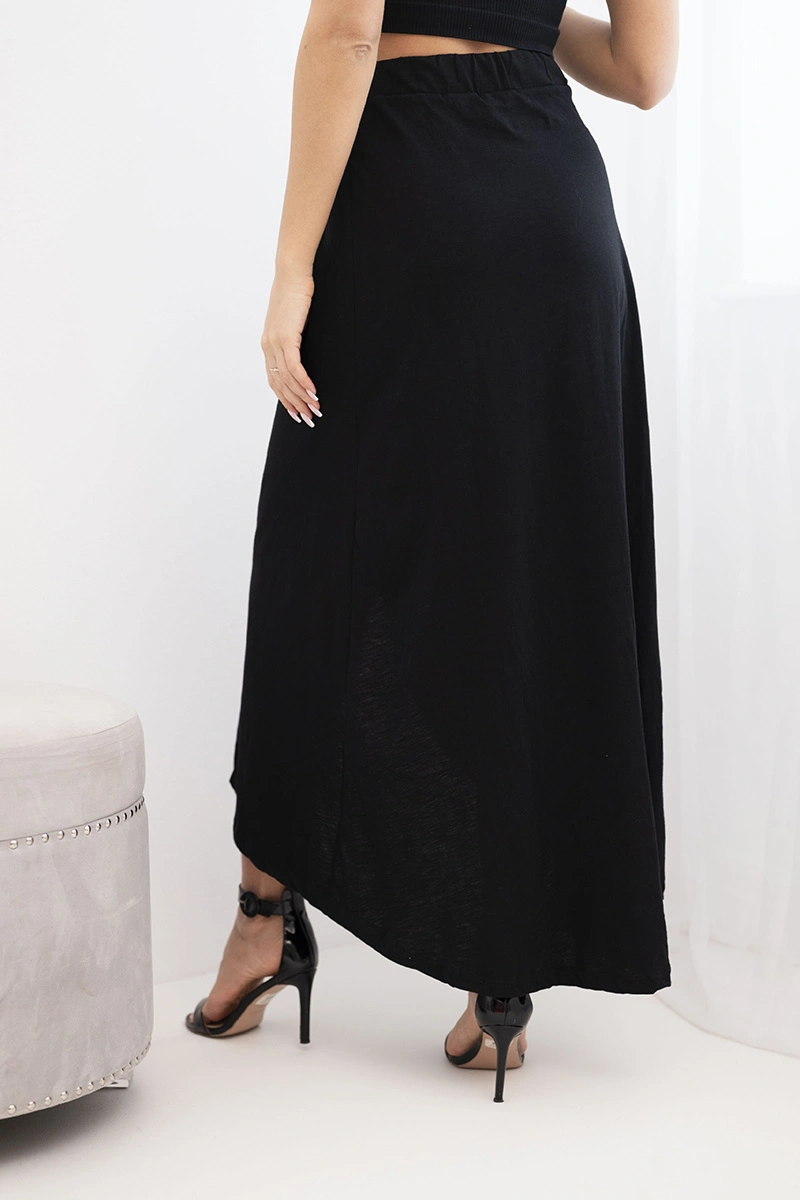 Model wykonany w 100% z bawełny jest przewiewny, przyjemny w dotyku i komfortowy w noszeniu nawet w cieplejsze dni. Długość maxi sprawia, że spódnica świetnie prezentuje się zarówno w codziennych stylizacjach z topem czy t-shirtem, jak i w bardziej eleganckim wydaniu z koszulą lub dopasowaną bluzką. To uniwersalny element garderoby, który sprawdzi się na spacer, wakacyjny wyjazd, spotkanie ze znajomymi czy letnie przyjęcie.