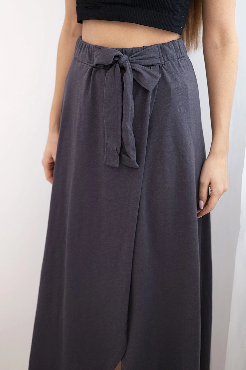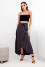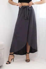 Spódnica damska bawełniana kopertowa maxi z wiązaniem grafitowa