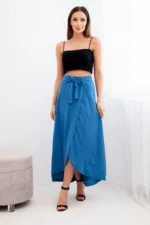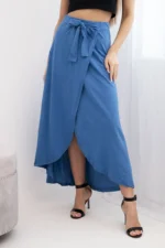 Spódnica damska bawełniana kopertowa maxi z wiązaniem jeansowa