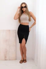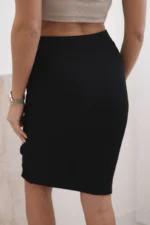 Spódnica damska bawełniana prążkowana z rozcięciem i ozdobnymi guzikamiczarna