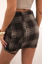 Spódniczka damska na szelkach w kratę z guzikami brązowa