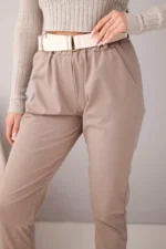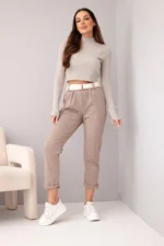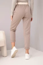 Spodnie damskie bawełniane z paskiem i podwijaną nogawką fango