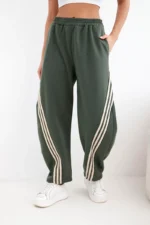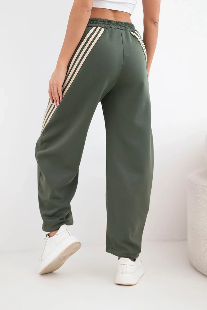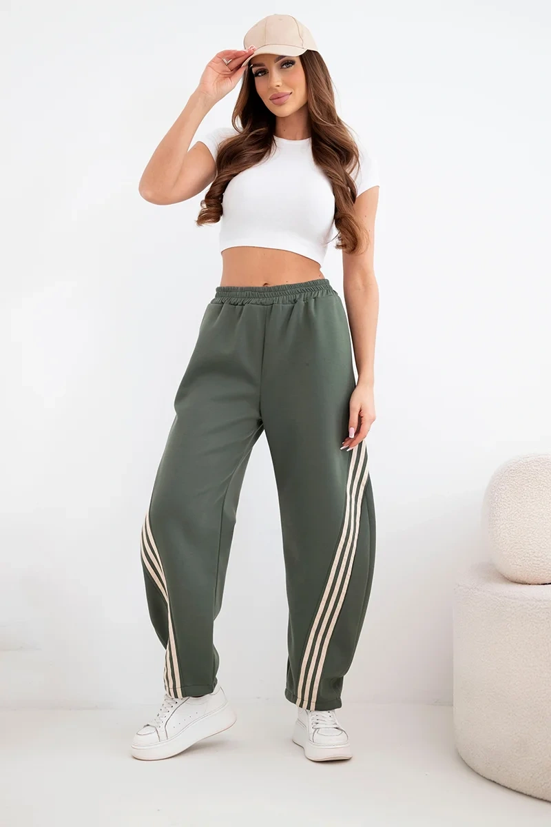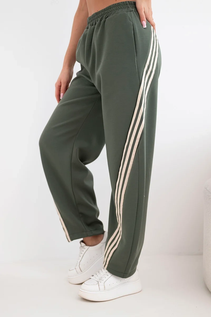 Spodnie damskie masełkowe z wiskozy z lampasem khaki