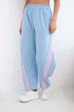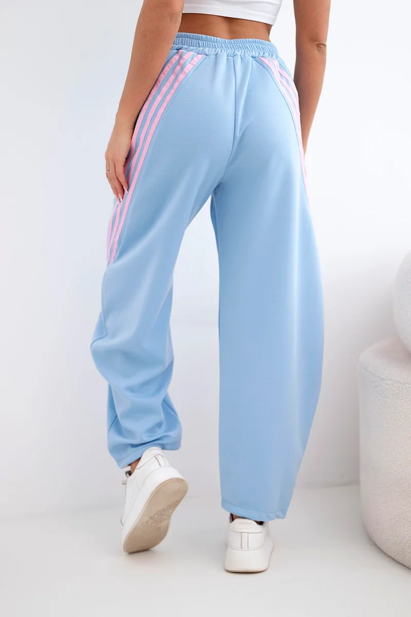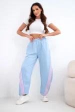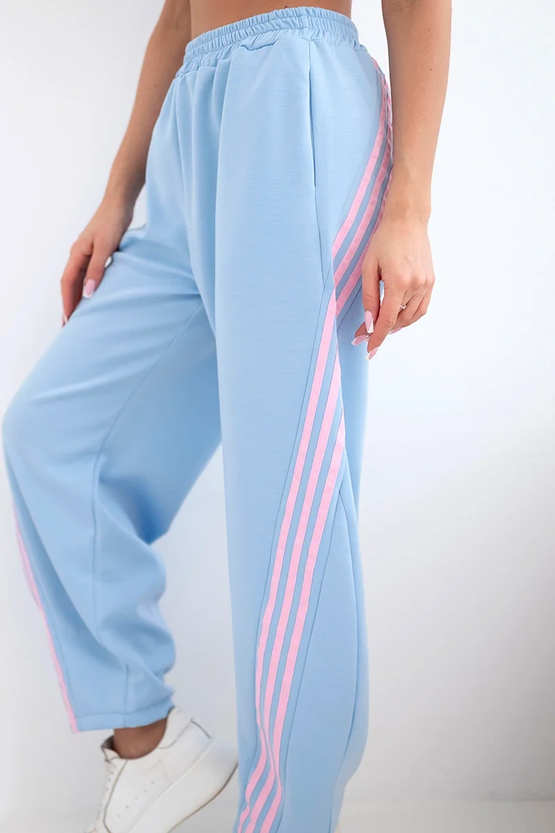 Spodnie damskie masełkowe z wiskozy z lampasem niebieskie