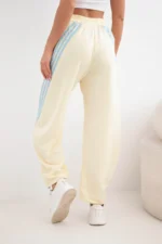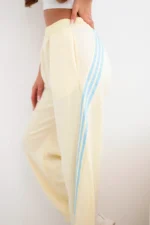 Spodnie damskie masełkowe z wiskozy z lampasem żółte