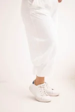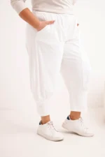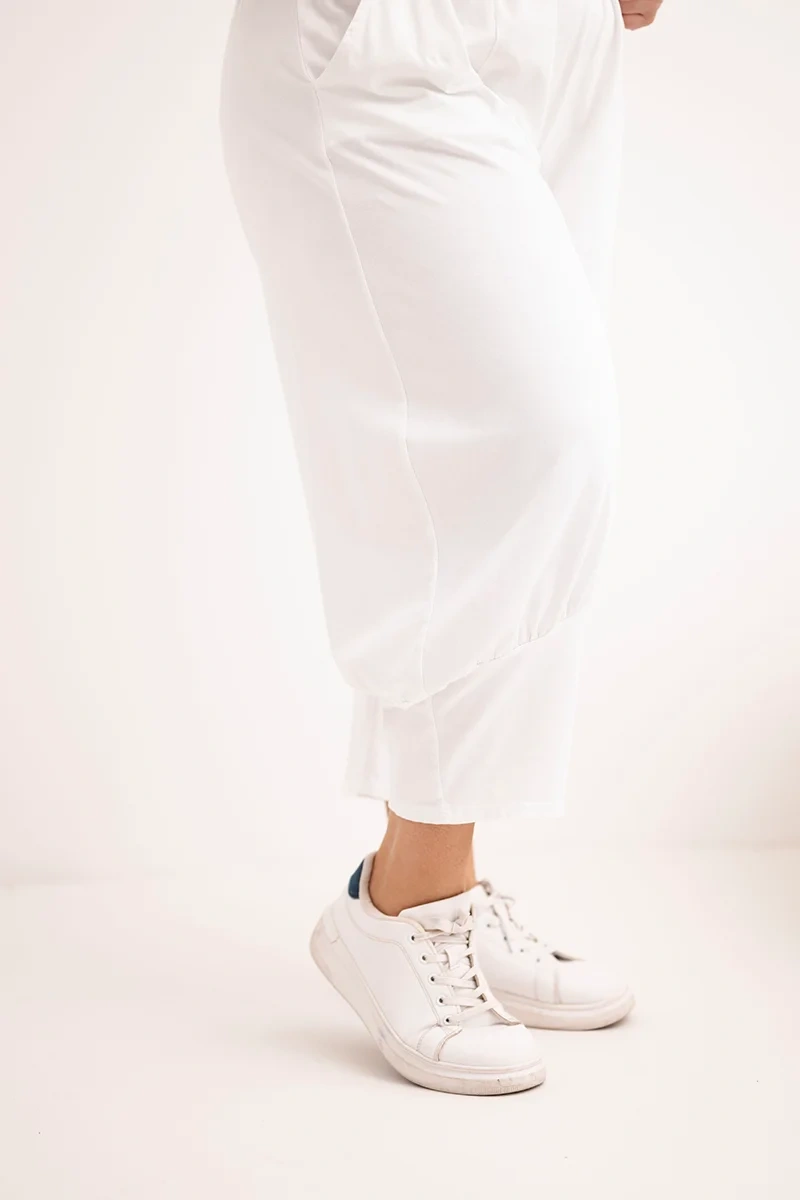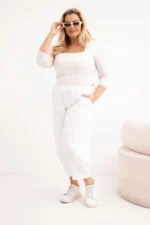 Spodnie damskie Plus Size z obniżonym krokiem i gumką w pasie białe