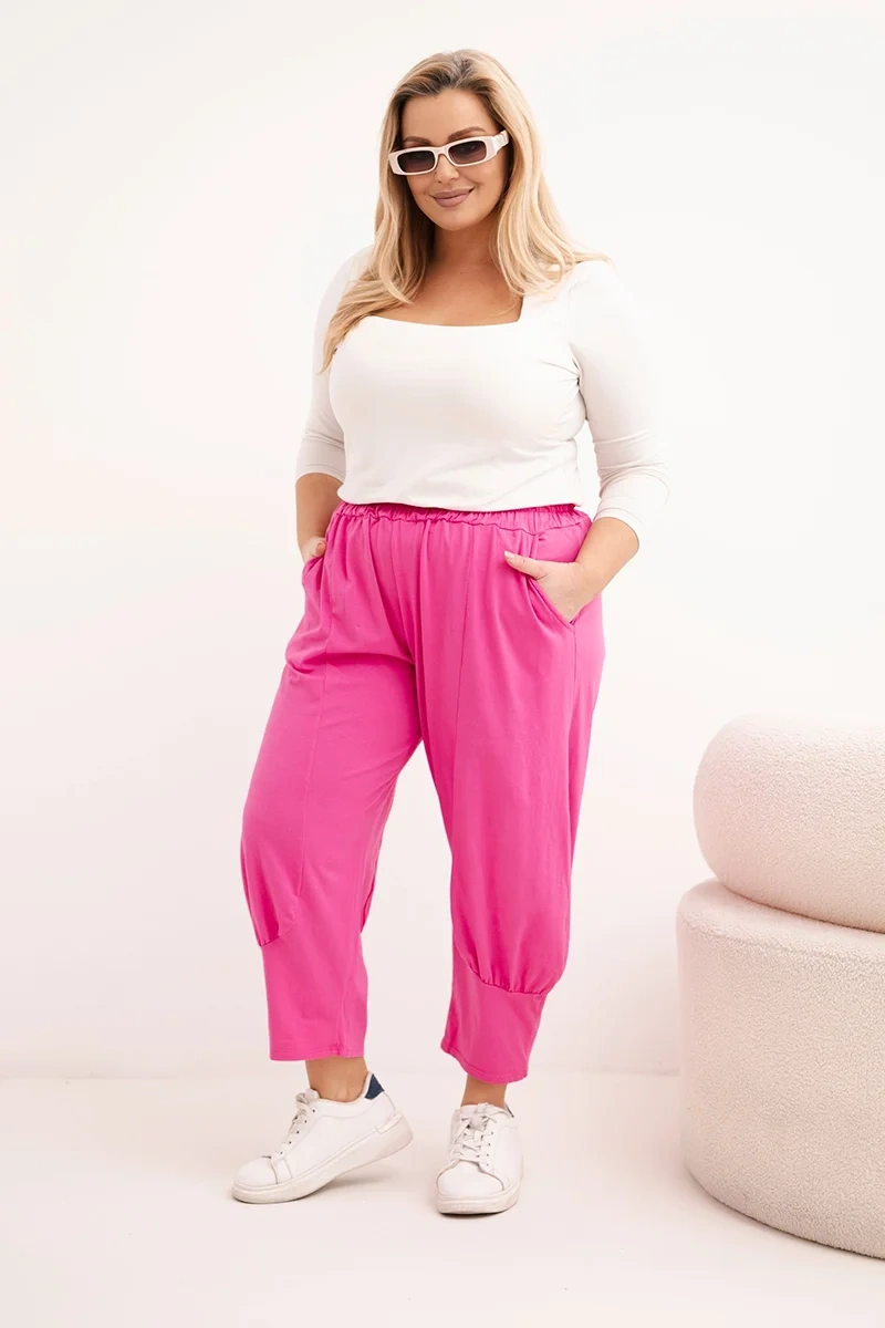 Spodnie damskie Plus Size z obniżonym krokiem i gumką w pasie różowe
