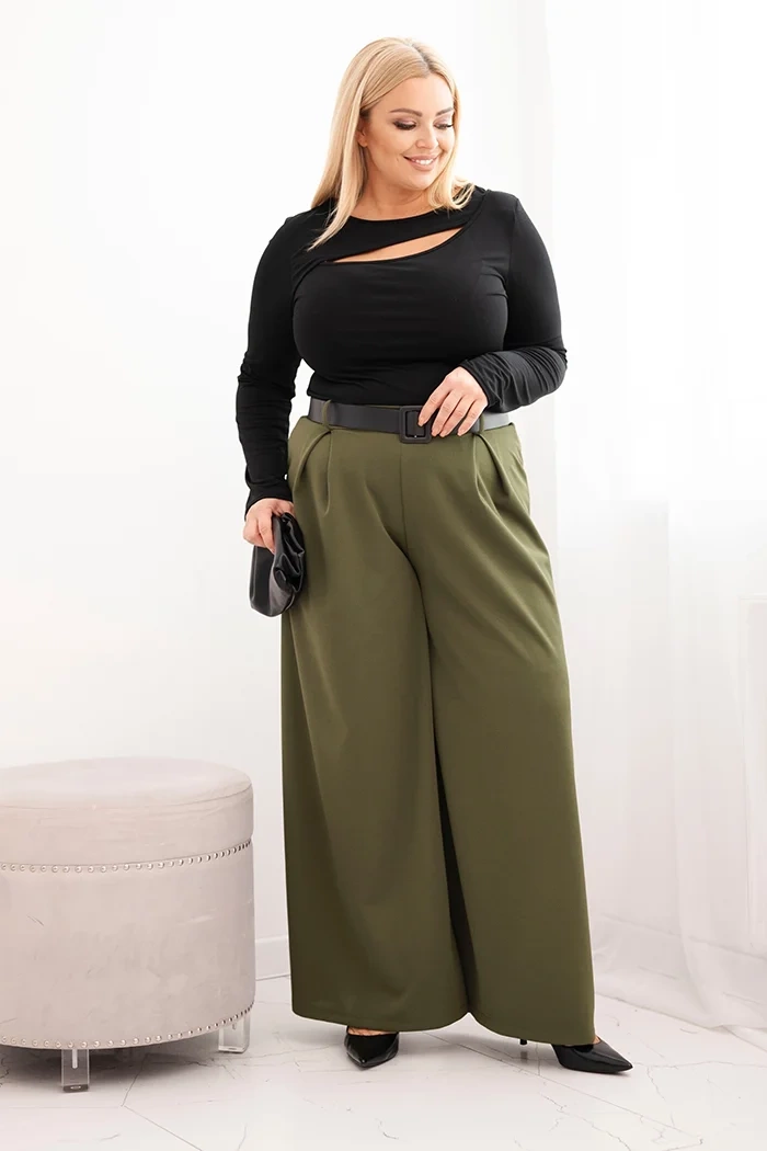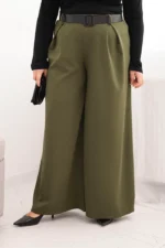 Spodnie damskie Plus Size z szeroką nogawką i paskiem khaki