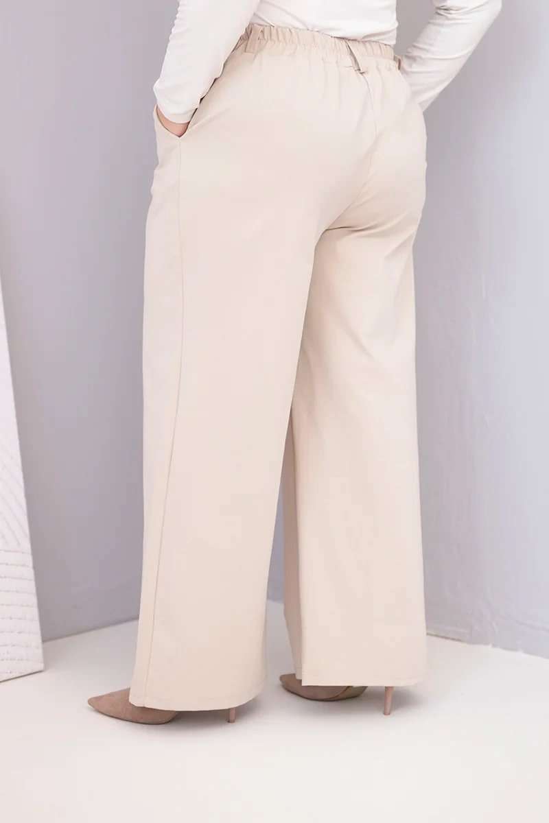 Spodnie damskie Plus Size z szeroką nogawką i wysokim stanem beżowe