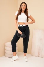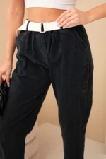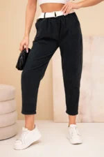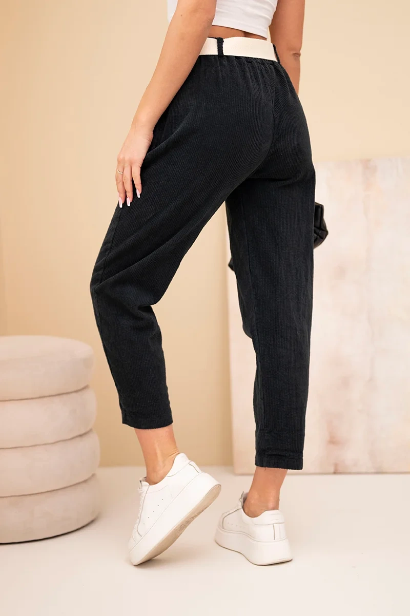 Wygodne i modne spodnie damskie z miękkiego sztruksu to doskonały wybór na chłodniejsze dni. Ich nowoczesny fason ze zwężanymi nogawkami i elastycznym pasem zapewnia idealne dopasowanie do sylwetki oraz wysoki komfort noszenia. Do zestawu dołączony jest materiałowy pasek, który podkreśla talię i dodaje stylowego wykończenia całej stylizacji.