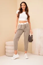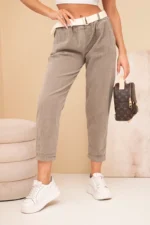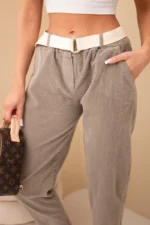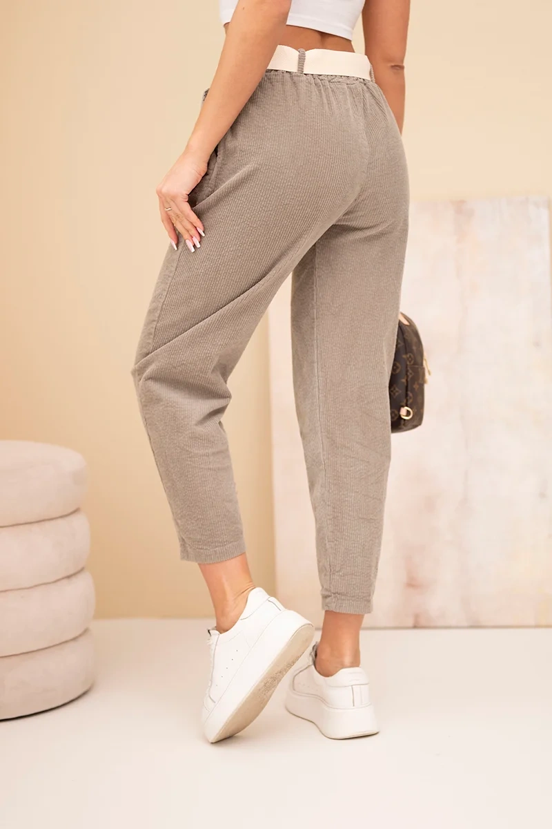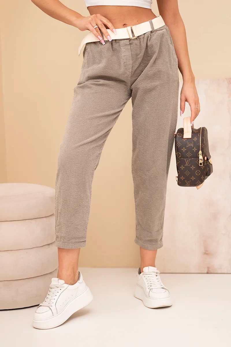 Spodnie damskie sztruksowe z paskiem fango