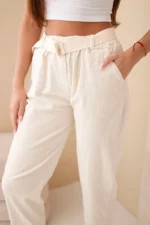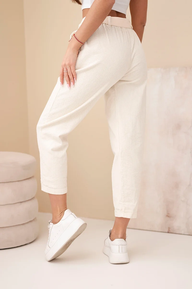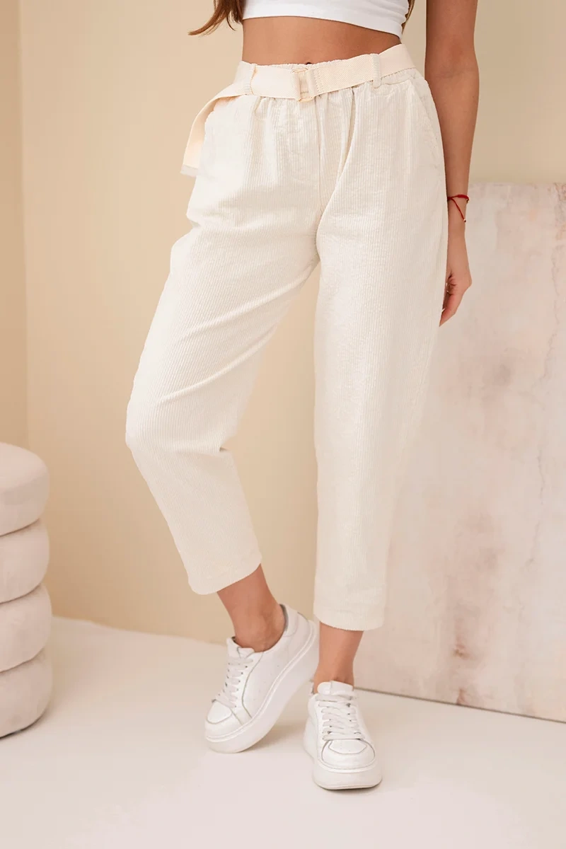 Spodnie damskie sztruksowe z paskiem jasno beżowe