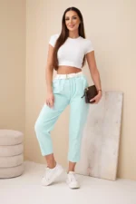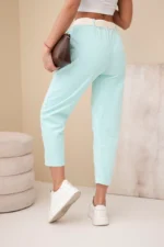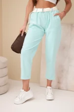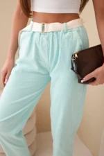 Spodnie damskie sztruksowe z paskiem miętowe