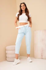 Wygodne i modne spodnie damskie z miękkiego sztruksu to doskonały wybór na chłodniejsze dni. Ich nowoczesny fason ze zwężanymi nogawkami i elastycznym pasem zapewnia idealne dopasowanie do sylwetki oraz wysoki komfort noszenia. Do zestawu dołączony jest materiałowy pasek, który podkreśla talię i dodaje stylowego wykończenia całej stylizacji.