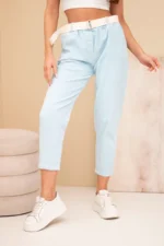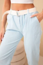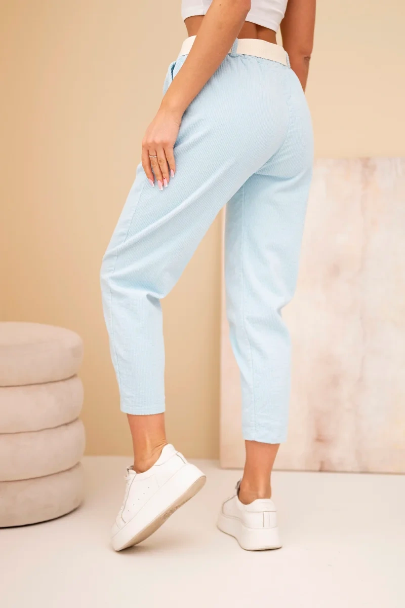 Spodnie damskie sztruksowe z paskiem niebieskie