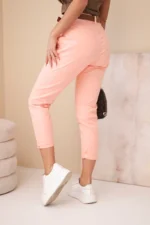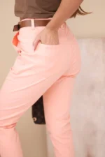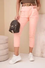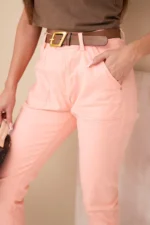Wygodne i modne spodnie damskie typu boyfriend z wysokim stanem to idealny wybór na wiosenne dni. Luźniejszy fason z podwiniętymi nogawkami oraz pasek z kontrastową klamrą dodają całości nowoczesnego i miejskiego charakteru. To spodnie, które sprawdzą się zarówno w stylizacjach casualowych, jak i bardziej kreatywnych – z koszulką, bluzką czy oversize’owym swetrem.