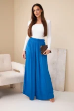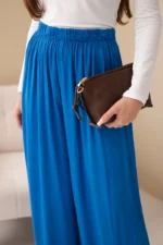 Spodnie damskie wiskozowe szerokie z gumką w pasie chabrowe