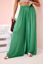 Spodnie damskie wiskozowe szerokie z gumką w pasie zielone