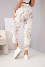 Spodnie mają elastyczny pas oraz dołączony materiałowy pasek, który pięknie podkreśla talię. Zwężane nogawki zakończone mankietami nadają całości nowoczesnego charakteru. Kwiatowy print sprawia, że są one świetnym wyborem na wiosnę i lato – idealne do codziennych stylizacji, spacerów i wyjazdów.