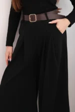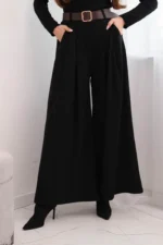 Spodnie damskie z szeroką nogawką i paskiem czarne