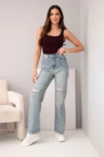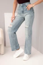 Modne jeansy damskie z szeroką nogawką to idealna propozycja dla kobiet, które cenią wygodę i styl w codziennych stylizacjach. Model z wysokim stanem doskonale podkreśla talię oraz optycznie wydłuża sylwetkę, a luźniejszy krój nogawki zapewnia swobodę ruchów i komfort noszenia przez cały dzień. Efektowne przetarcia i delikatne cieniowania nadają spodniom nowoczesnego, miejskiego charakteru.