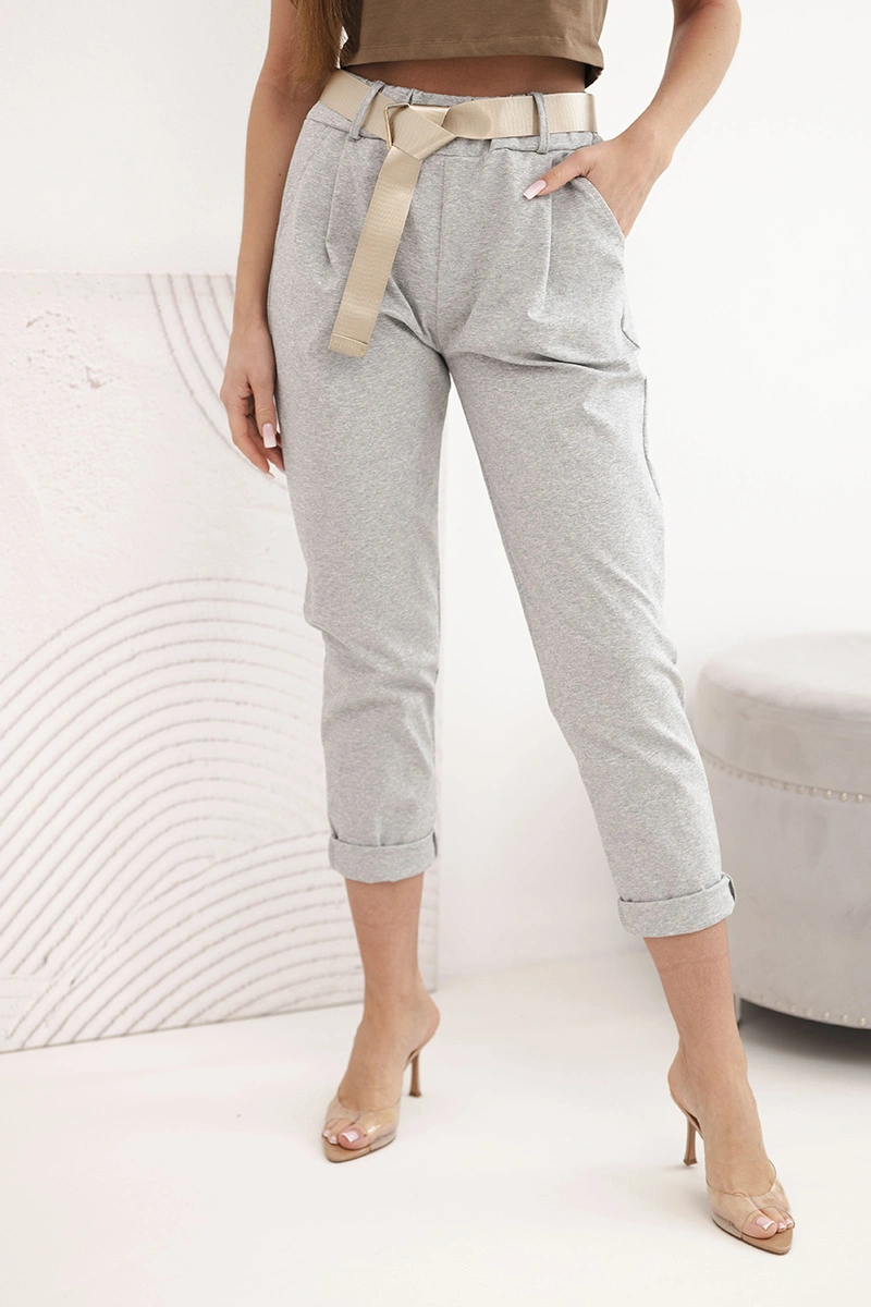 Spodnie Punto z paskiem to stylowy i wygodny wybór, który łączy elegancję z funkcjonalnością. Wykonane z wysokiej jakości materiału, zapewniają komfort noszenia i doskonałe dopasowanie. Pasek w talii podkreśla sylwetkę i dodaje spodniom wyrafinowanego charakteru. Idealne zarówno na codzienne wyjścia, jak i bardziej formalne okazje, te spodnie są wszechstronnym elementem garderoby, który pozwala stworzyć wiele modnych stylizacji. Spodnie z paskiem to must-have dla każdej kobiety ceniącej elegancję i komfort w jednym. Rozmiar jest uniwersalny i będzie odpowiedni dla Pań noszących rozmiar  S, M lub L.