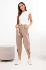 Spodnie Summer Punto z zapięciem na nogawkach camelowe