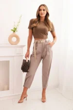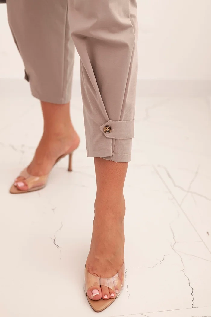 Spodnie Summer Punto z zapięciem na nogawkach to nowoczesna i stylowa propozycja, która łączy wygodę z oryginalnym designem. Wykonane z wysokiej jakości materiału, zapewniają komfort noszenia, jednocześnie podkreślając sylwetkę. Charakterystycznym elementem spodni jest zapięcie na nogawkach, które dodaje całości unikalnego, modnego akcentu. Ich klasyczny, ale dopracowany krój sprawia, że są one idealnym wyborem zarówno na co dzień, jak i na bardziej formalne okazje. Dzięki elastycznej talii i dopasowanemu fasonowi, spodnie te świetnie komponują się z różnymi stylizacjami – od casualowych po eleganckie. Rozmiar jest uniwersalny i będzie odpowiedni dla Pań noszących rozmiar S, M lub L.