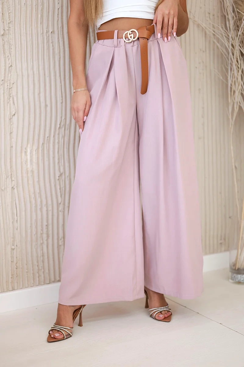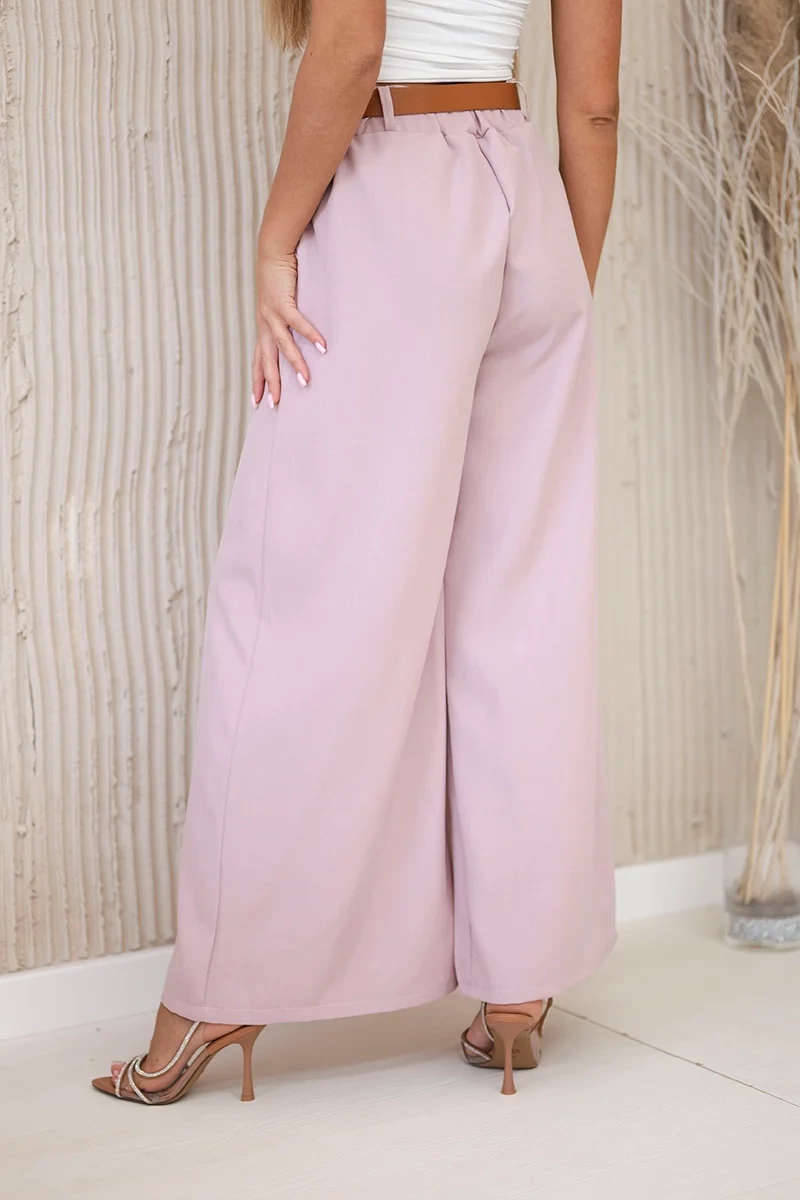 Spodnie z paskiem i szeroką nogawką ciemny pudrowy róż