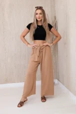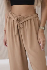 Spodnie z szerokimi nogawkami i wiązaniem w pasie to modny i wygodny wybór na wiele okazji. Szerokie nogawki dodają swobody i lekkości całej stylizacji, podczas gdy wiązanie w pasie pozwala dostosować spodnie do indywidualnych preferencji dotyczących dopasowania. Doskonale sprawdzą się na letnie spacery, casualowe spotkania czy wieczorne wyjścia, dodając Twojej stylizacji modnego akcentu i wygodnego noszenia. Te spodnie staną się szybko niezastąpionym elementem Twojej garderoby, łącząc w sobie funkcjonalność i styl. Rozmiar jest uniwersalny i będzie odpowiedni dla Pań noszących rozmiar S, M lub L.