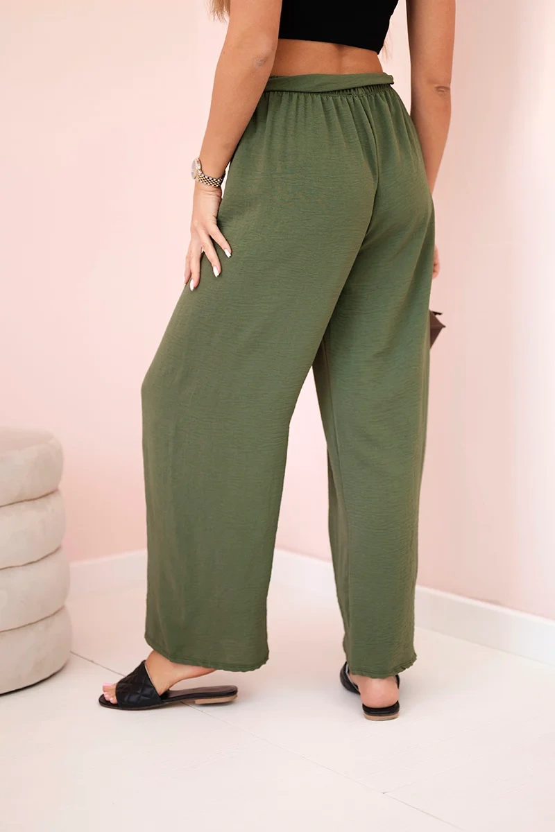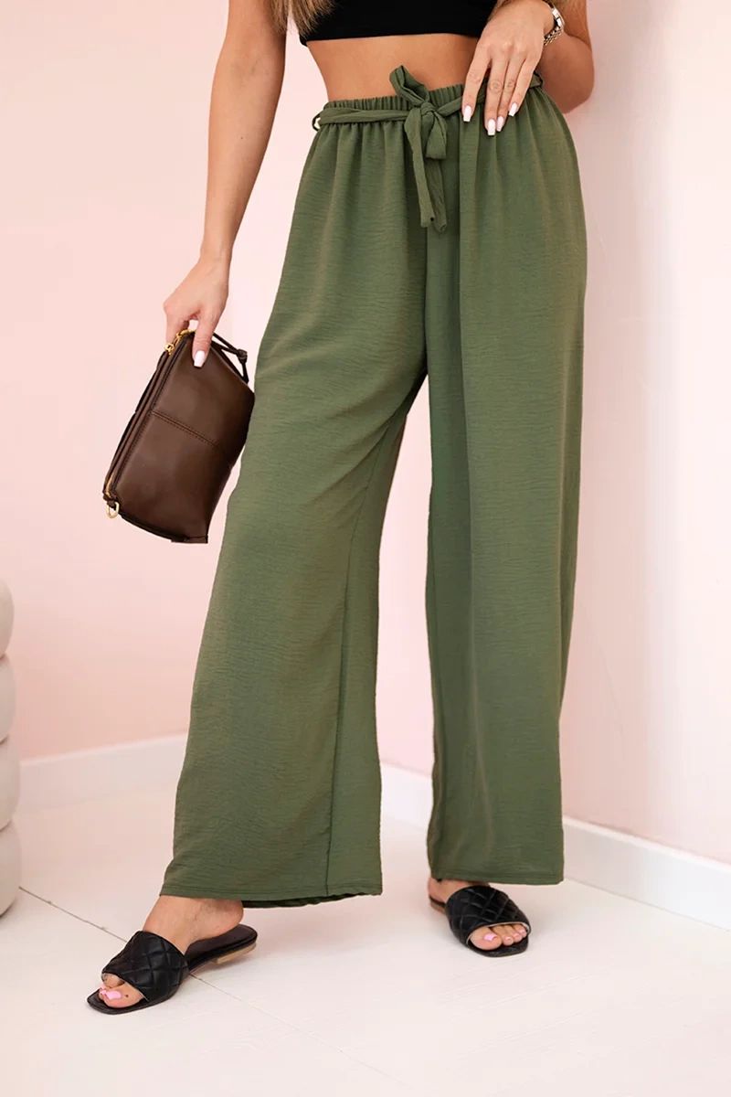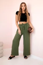 Spodnie z szerokimi nogawkami i wiązaniem w pasie to modny i wygodny wybór na wiele okazji. Szerokie nogawki dodają swobody i lekkości całej stylizacji, podczas gdy wiązanie w pasie pozwala dostosować spodnie do indywidualnych preferencji dotyczących dopasowania. Doskonale sprawdzą się na letnie spacery, casualowe spotkania czy wieczorne wyjścia, dodając Twojej stylizacji modnego akcentu i wygodnego noszenia. Te spodnie staną się szybko niezastąpionym elementem Twojej garderoby, łącząc w sobie funkcjonalność i styl. Rozmiar jest uniwersalny i będzie odpowiedni dla Pań noszących rozmiar S, M lub L.