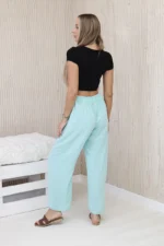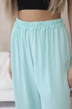 Spodnie z szeroką nogawką to wyjątkowy element garderoby, który łączy w sobie komfort i elegancję. Wykonane z lekkiego i przewiewnego materiału, te spodnie gwarantują nie tylko swobodę ruchów, ale także zapewniają uczucie lekkości i świeżości przez cały dzień. Szeroka nogawka nadaje spodniom charakterystyczny, luźny fason, który jest zarówno modny, jak i wygodny. Ten element sprawia, że spodnie prezentują się niezwykle stylowo i efektownie, dodając oryginalności każdej stylizacji. Uniwersalny design spodni z szeroką nogawką sprawia, że doskonale pasują one do różnych okazji i stylizacji. Możesz nosić je zarówno do codziennych, luzackich outfitów, jak i do bardziej eleganckich zestawów na spotkania biznesowe czy wieczorne wyjścia. Spodnie z szeroką nogawką to idealny wybór dla kobiet, które cenią sobie wygodę i styl. Dzięki swojemu uniwersalnemu designowi i wysokiej jakości wykonania, te spodnie stanowią niezastąpiony element garderoby, który świetnie uzupełni każdą kolekcję ubrań. Rozmiar jest uniwersalny i będzie odpowiedni dla Pań noszących rozmiar  S, M lub L.
