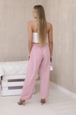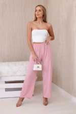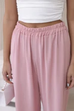 Spodnie z szeroką nogawką to wyjątkowy element garderoby, który łączy w sobie komfort i elegancję. Wykonane z lekkiego i przewiewnego materiału, te spodnie gwarantują nie tylko swobodę ruchów, ale także zapewniają uczucie lekkości i świeżości przez cały dzień. Szeroka nogawka nadaje spodniom charakterystyczny, luźny fason, który jest zarówno modny, jak i wygodny. Ten element sprawia, że spodnie prezentują się niezwykle stylowo i efektownie, dodając oryginalności każdej stylizacji. Uniwersalny design spodni z szeroką nogawką sprawia, że doskonale pasują one do różnych okazji i stylizacji. Możesz nosić je zarówno do codziennych, luzackich outfitów, jak i do bardziej eleganckich zestawów na spotkania biznesowe czy wieczorne wyjścia. Spodnie z szeroką nogawką to idealny wybór dla kobiet, które cenią sobie wygodę i styl. Dzięki swojemu uniwersalnemu designowi i wysokiej jakości wykonania, te spodnie stanowią niezastąpiony element garderoby, który świetnie uzupełni każdą kolekcję ubrań. Rozmiar jest uniwersalny i będzie odpowiedni dla Pań noszących rozmiar  S, M lub L.