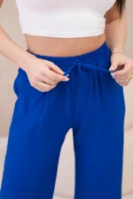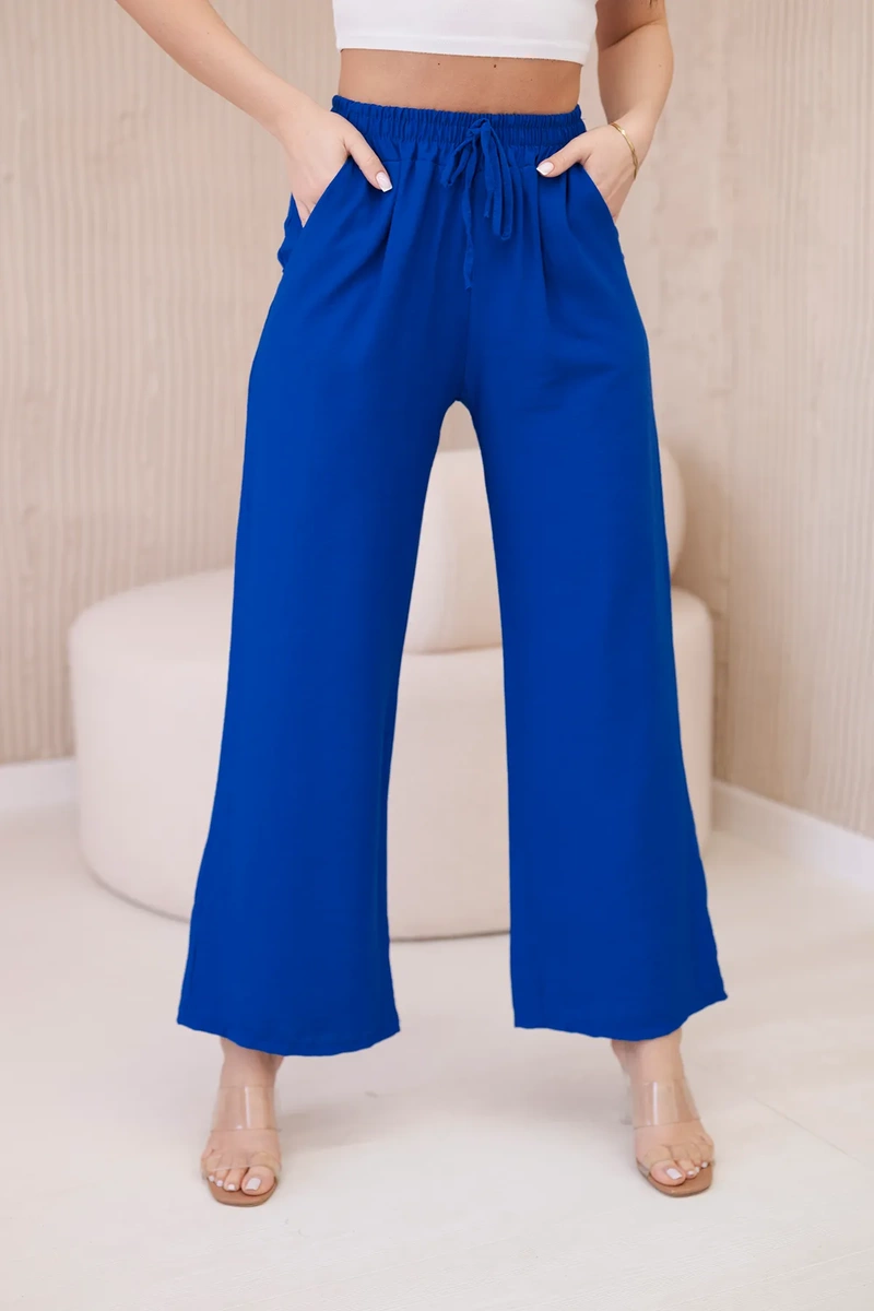 Spodnie z wiskozy z szeroką nogawką chabrowe