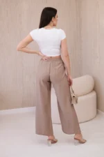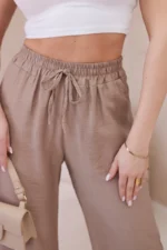Spodnie z wiskozy z szeroką nogawką to wyjątkowy element garderoby, który łączy w sobie komfort i elegancję. Wykonane z lekkiego i przewiewnego materiału wiskozy, te spodnie gwarantują nie tylko swobodę ruchów, ale także zapewniają uczucie lekkości i świeżości przez cały dzień. Szeroka nogawka nadaje spodniom charakterystyczny, luźny fason, który jest zarówno modny, jak i wygodny. Ten element sprawia, że spodnie prezentują się niezwykle stylowo i efektownie, dodając oryginalności każdej stylizacji. Uniwersalny design spodni z szeroką nogawką sprawia, że doskonale pasują one do różnych okazji i stylizacji. Możesz nosić je zarówno do codziennych, luzackich outfitów, jak i do bardziej eleganckich zestawów na spotkania biznesowe czy wieczorne wyjścia. Spodnie z wiskozy z szeroką nogawką to idealny wybór dla kobiet, które cenią sobie wygodę i styl. Dzięki swojemu uniwersalnemu designowi i wysokiej jakości wykonania, te spodnie stanowią niezastąpiony element garderoby, który świetnie uzupełni każdą kolekcję ubrań. Rozmiar jest uniwersalny i będzie odpowiedni dla Pań noszących rozmiar  S, M lub L.