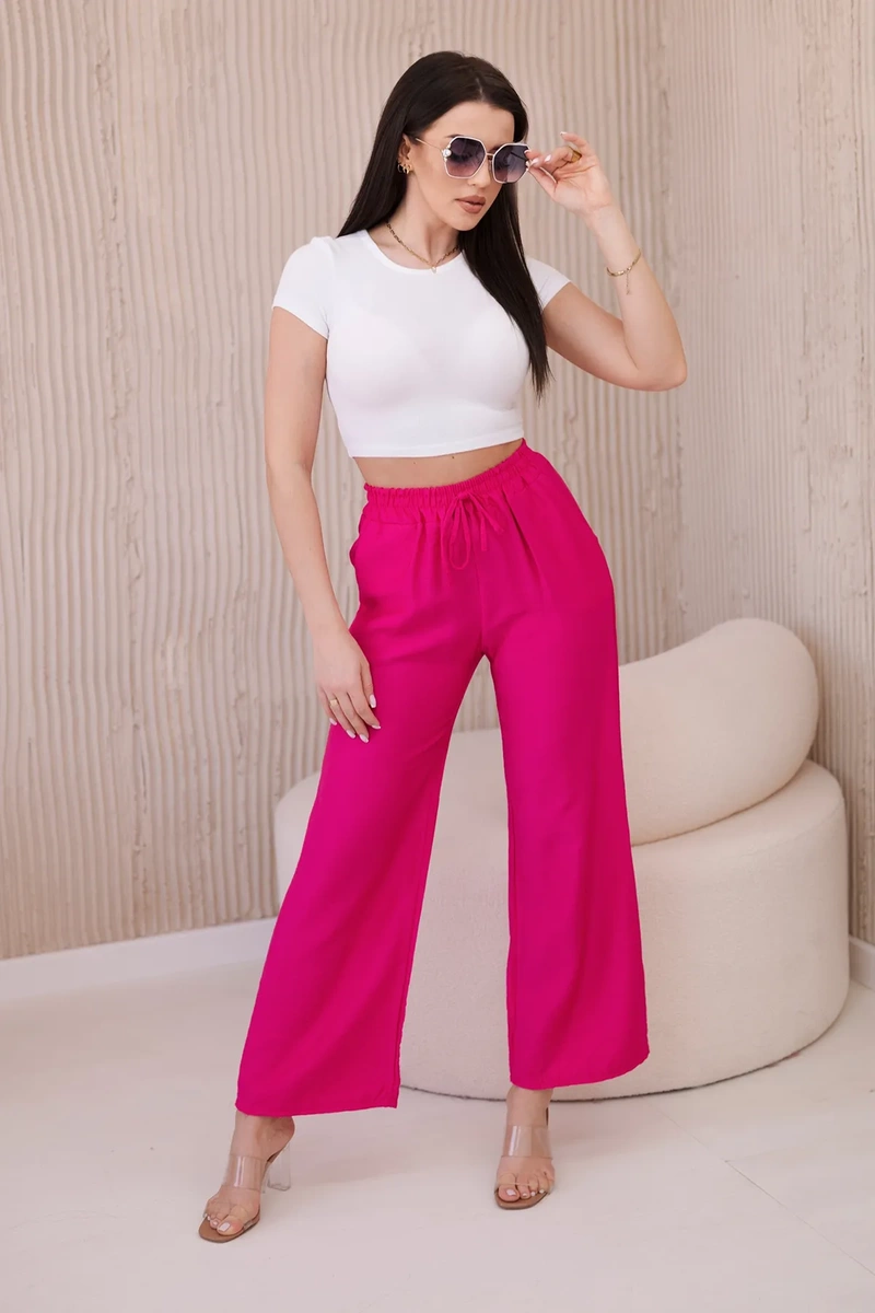 Spodnie z wiskozy z szeroką nogawką fuksja