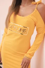 Sukienka damska bawełniana z odkrytymi ramionami i napisem OFFLINE musztardowa