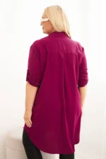 Sukienka damska koszulowa Plus Size z dłuższym tyłem i podwijanym rękawem ciemno fioletowa