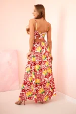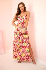 Ta zwiewna sukienka maxi to idealny wybór na ciepłe, letnie dni! Wykonana z lekkiego, przyjemnego materiału, doskonale układa się na sylwetce i zapewnia pełen komfort noszenia. Regulowane cienkie ramiączka i dopasowana góra pięknie podkreślają figurę, a rozkloszowany dół dodaje lekkości i elegancji. Kolorowy nadruk i ornamentowe wzory nadają jej wyjątkowego, śródziemnomorskiego stylu, który idealnie sprawdzi się na wakacjach, spacerach czy letnich przyjęciach. Rozmiar jest uniwersalny i będzie odpowiedni dla Pań w rozmiarze S, M lub L.