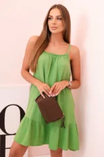 Sukienka damska muślinowa na ramiączkach z falbaną oliwkowa