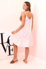 Sukienka damska muślinowa na ramiączkach z falbaną pudrowy róż