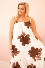 Sukienka damska na ramiączkach z falbaną i kwiatowym printem brązowa