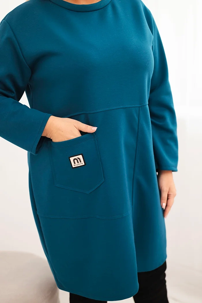 Sukienka damska Plus Size masełko z kieszenią i rękawem 3/4 morska
