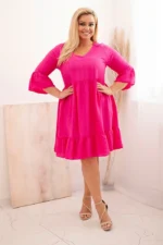 Jeśli szukasz sukienki, która łączy kobiecy styl z wygodą noszenia, ta propozycja będzie strzałem w dziesiątkę! Sukienka damska z falbanami i dekoracyjnym ażurowym tyłem to doskonały wybór na co dzień, jak i na bardziej wyjątkowe okazje. Jej luźny, swobodny krój pięknie układa się na sylwetce, zapewniając maksymalny komfort i przewiewność. Rękaw 3/4 zakończony falbaną dodaje lekkości, a dolna część wykończona falbaną tworzy subtelny, romantyczny efekt. Wykonana w 100% z wiskozy, sukienka jest miękka, delikatna dla skóry i idealna na cieplejsze dni. Ażurowe zdobienie na plecach nadaje całości modnego, niebanalnego charakteru. To świetna opcja zarówno do pracy, jak i na spacer czy spotkanie z przyjaciółmi.