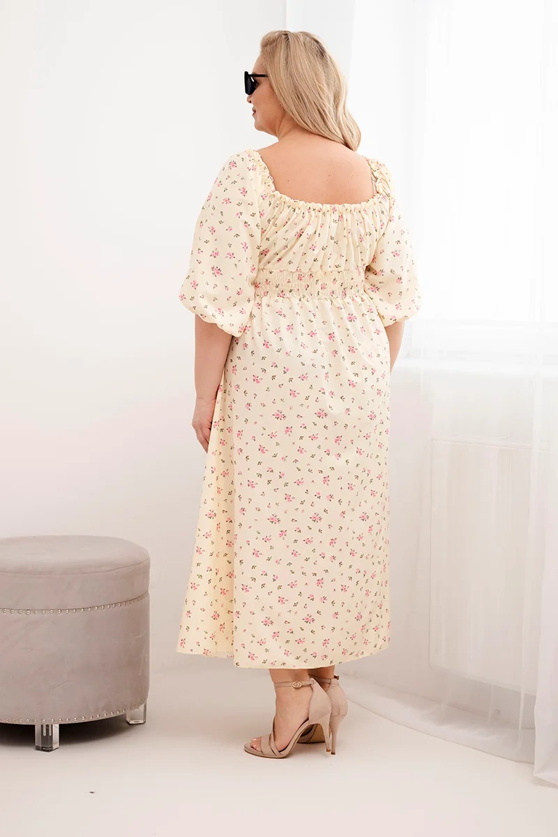 Sukienka damska Plus Size z dekoltem na troczki i elastyczną talią żółta