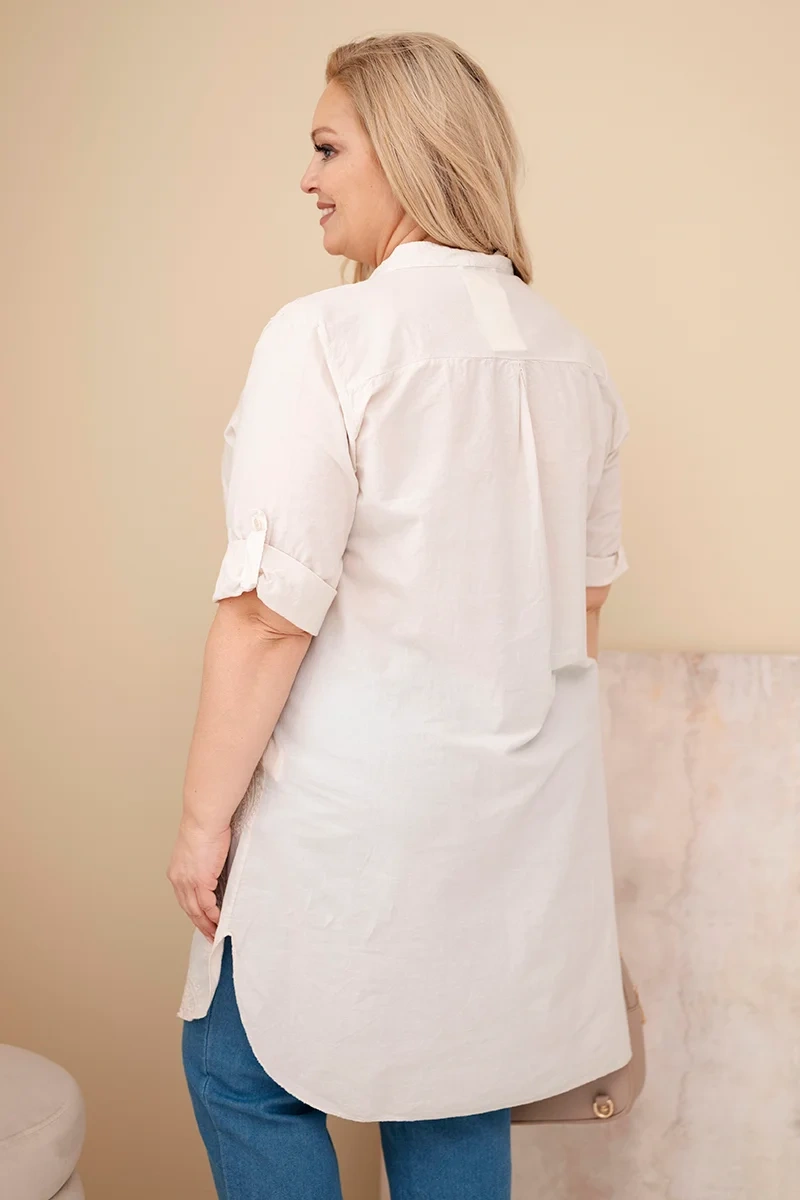 Sukienka damska Plus Size z haftem i podwijanym rękawem beżowa