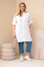 Ta bawełniana sukienka damska to idealne połączenie lekkości, wygody i subtelnego stylu. Wykonana w 100% z naturalnej tkaniny, gwarantuje komfort noszenia nawet w cieplejsze dni. Delikatny haft w modny wzór paisley dodaje jej elegancji i unikalnego charakteru. Model posiada luźny fason, który nie opina sylwetki, oraz rękawy z możliwością podwinięcia i zapięcia na guziczek. Sukienka świetnie sprawdzi się jako samodzielna stylizacja lub jako narzutka na top i legginsy – idealna na wiosnę, lato i wakacyjne wyjazdy.