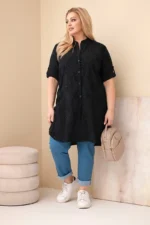 Sukienka damska Plus Size z haftem i podwijanym rękawem czarna